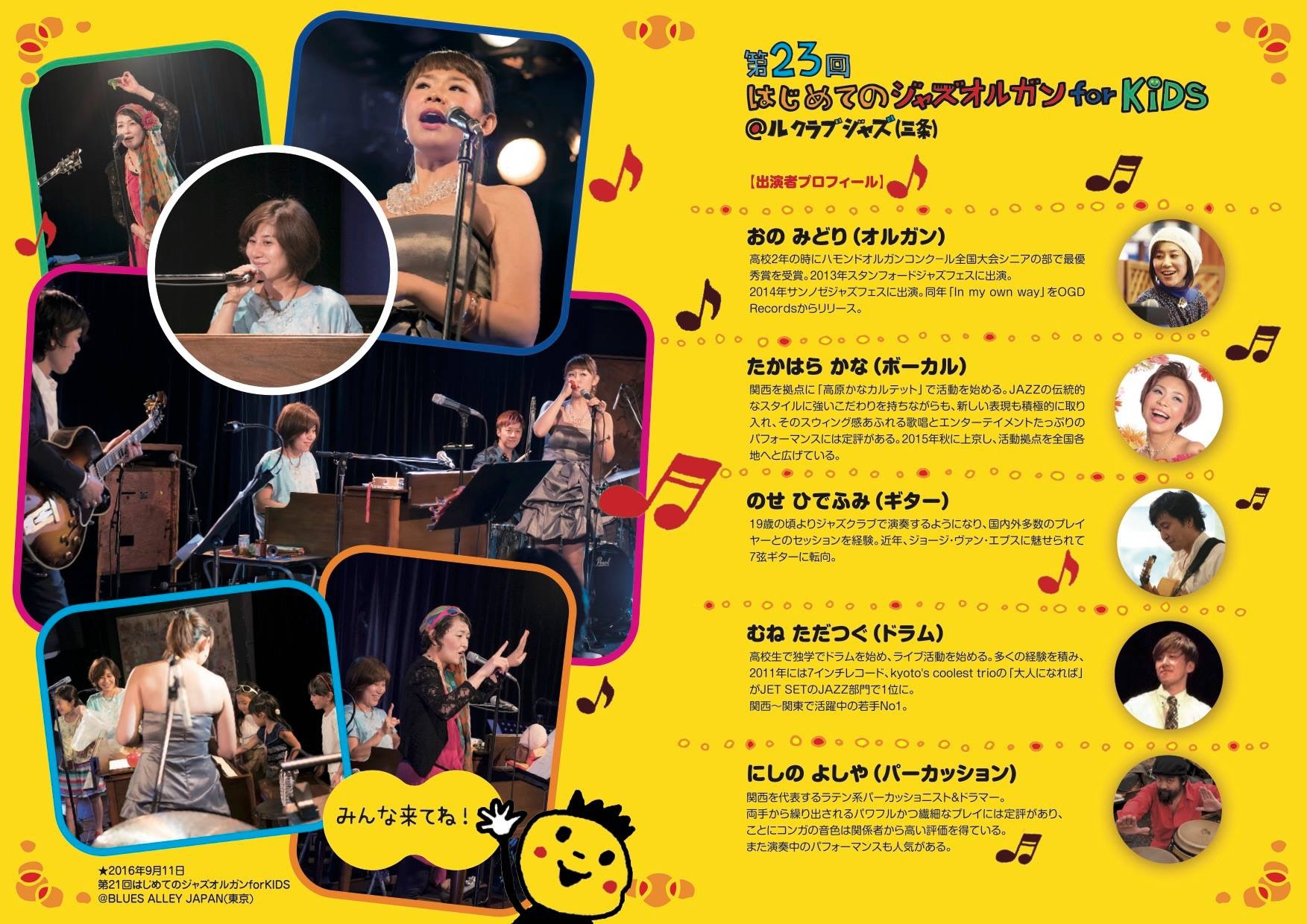 ☆4月30日(日曜日)京都三条御幸町・ルクラブジャズ京都市中京区三条御幸町角三条ありもとビル2F075-211-5800≪はじめてのジャズオルガン for KIDS≫(Org)小野みどり (G)能勢英史 (Ds)棟允嗣 (Per)西野欣哉 (Vo)高原かな